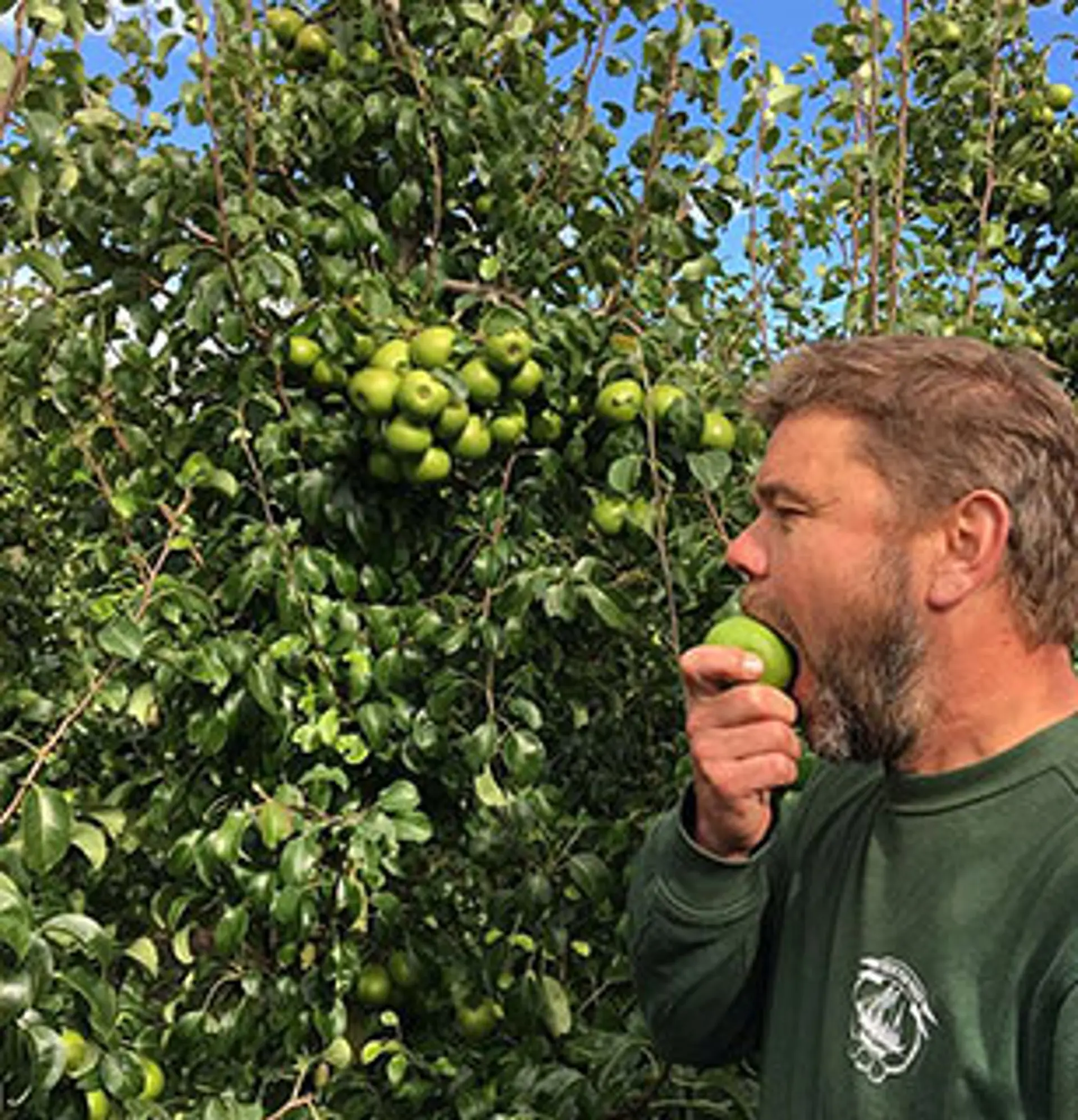 ”Vi er begunstiget af et mildt klima perfekt til frugtavl. Det betyder, at vi kan undvære næsten al kemi. Jeg sprøjter ikke efter Sankt Hans – på den måde kan jeg levere nogle af de mest velsmagende og pesticidfri varer på Coops hylder”, Laust Spandet Jensen, Vesterled Frugtplantage, Fejø.